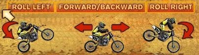 Tips: You can see what is rolling left or right in below screenshot. The best way to win this game is always hold on to the acceleration button and land your bike such that it is parallel to the surface. You can also do front and back flips; but if you topple and hit your head to the surface, then the race will start all over again.
