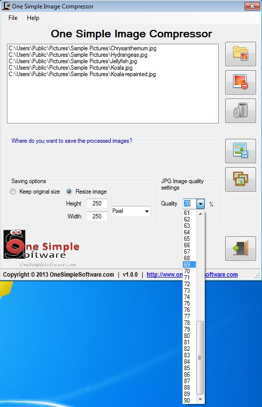 Key features of One Simple Compressor free batch photo compression software are: