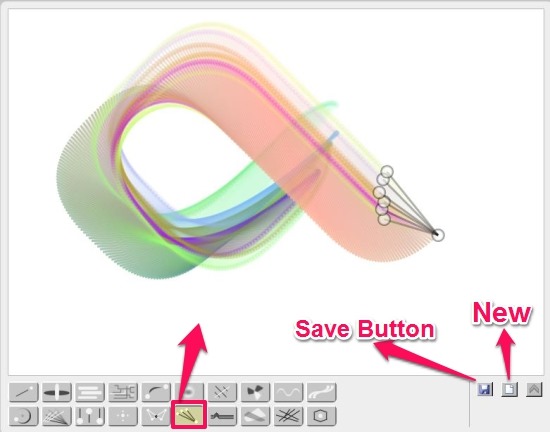 Bomomo allows you to save the creative patterns to your computer in JPG file format. You can begin to explore new patterns by simply clicking on “New”. Checkout another abstract image created using Bomomo in the below screenshot.
