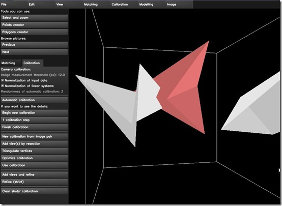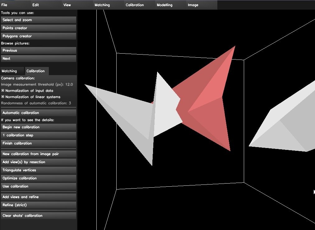Once the cameras are calibrated, click on triangulate all vertices in the modelling menu. All the important points in the pictures are shown in a 3D Cube, according to their camera positions.