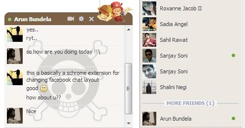 After you install Facebook Chat Layout in your Chrome browser, you just need to refresh your Facebook page to apply the custom skin to your chat window. The first skin that appears will be of “One Piece”. You can either keep it or try out the other skins by pressing the extension’s icon that appears in front of the address bar of your browser.