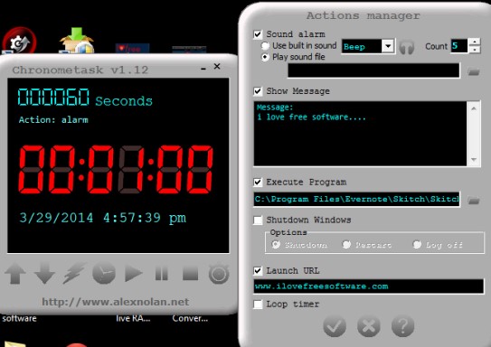 Chronometask is a free task scheduler that helps to execute a program at scheduled time, display a message, shutdown PC, and launch a URL at scheduled time. It is a small timer utility, which provides these four useful features. Apart from this, it also provides a simple stopwatch, that you can use to measure total time you need to complete a task. All tasks can be performed together or you can set which task should be scheduled.