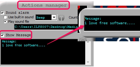 - Display message: This could be used as task reminder. Here, you can write a message, and that message will be displayed on exact time on your desktop screen. Task reminder could be more useful with alarm.