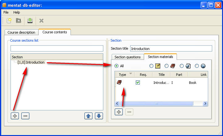 After you’ve filled up the materials section, then you can determine what kind of questions this course will contain. Questions will have to be loaded up from a XML document, they cannot be edited directly inside the program, which is kind of a drawback. After you’re done with filling out the Sections and contents and questions for these sections your course is planned out, and all that’s left is to stick to it.