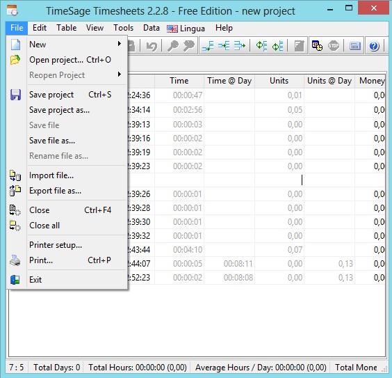 TimeSage Timesheets is perfect for personal use, small teams that are working on their projects and need to have accurate time that’s spent working on something. Use the usual File option from the top left corner to save the protect entirely, in which case it can be easily edited later on, or use the Export file as if you want only the time sheet exported. Very easy and simple to use.