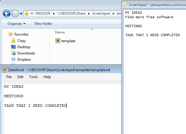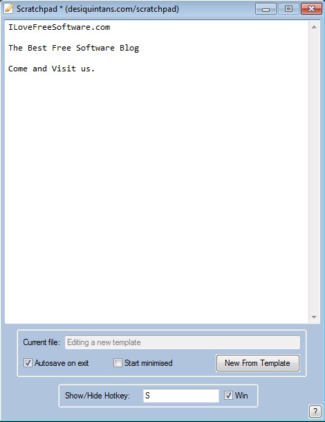 Open it up in a text editor and change it to your liking. For example we have changed by adding three different groups, so that each time that we have a great idea goes under the My Ideas line, new meeting where our presence is required under Meetings line and so on. For this new template to show up in this free note taking utility, click on the New From Template button down below and select where to save it. Once you’ve done that, the only thing that’s left is to tweak the activator hotkey, which is Win+S by default, and use it to call up Scratchpad from the system tray and write down notes.