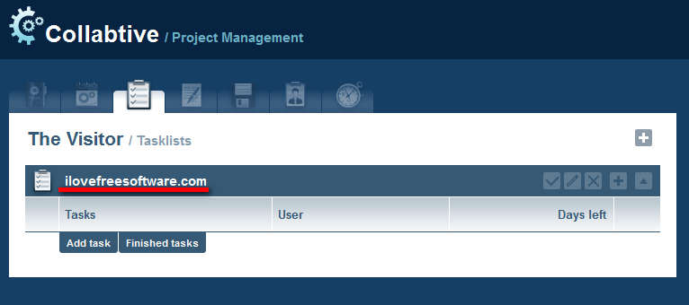 The most important part of any project would be tasks, on the image above we can see a task added to the Tasklist. For each task it’s possible to add users and also assign the number of days in which you want the task completed. Before you can assign users they have to be added, which is done in the Users tab from the menu above.