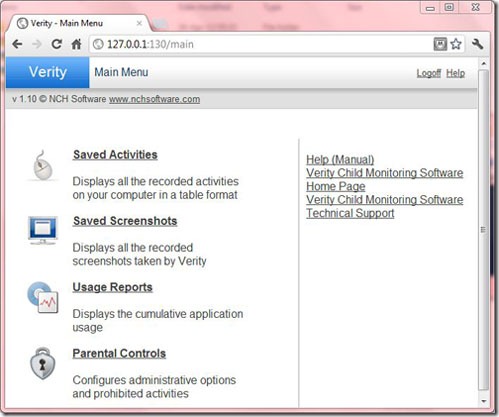 Verity Parental control is a monitoring program developed to help parents keep a look on their Child’s activities in the computer both on and off line. It is fully free to download and use.
