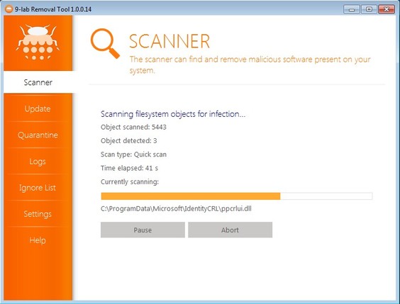 9-Lab Removal Tool is a great alternative to Malwarebytes, and much of the other malware removal utilities that exist out there. Detection is pretty good, test files that we used were detected promptly, even after using only the Quick Scan. There’s no ads of any kind, which is another thing that this free malware removal software is proud of.