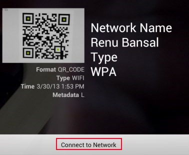 - That’s it, now you have a QR code of your Wi-Fi network with you. This QR code you need to give to your friends. After that, they only need to scan that QR code with a Barcode Scanner on their Android phone. This will let them scan that specific QR code and they will be able to connect to your Wi-Fi network without any worry of filling out details. See below screenshot: