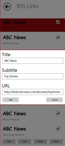 Follows a screenshot of viewing the RSS link of the ABC News Category within the app.