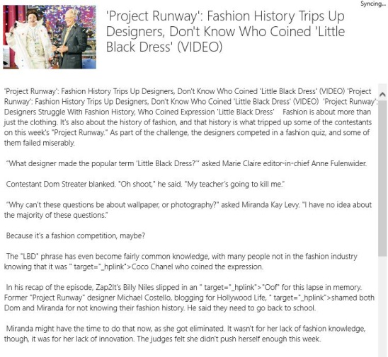 The categories included within the app are: ABC News, BBC, CNN, Daily Mail, Fox News, Huffington Post, LA Times, NBC, NY Times, Reuters, Sky News, USA Today, Washington Post, and Yahoo. All you have to do is select a category from the list, and make a right click, then click on Sync button. Once a category gets synced then you’ll get up to 10 news from that source. One good feature of this free Windows 8 News app here is in a way you are filtering the new articles.