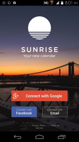 When you start the app, you will see different options to sign into the app; use the one which you like. After selecting a sign in method you will need to provide Sunrise Calendar with some permissions such as the ability to manage your calendar, contacts etc.