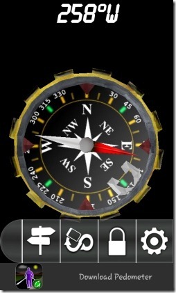 3D Compass is another offline compass for Android that lets you find the directions, in case you’re lost. This compass app displays a 3D compass and shows the orientation in degrees. This app comes with many customizable features, like: lock, calibration, compass skin, etc. You can mark the current location, so that you don’t loose the way, if you’re lost.