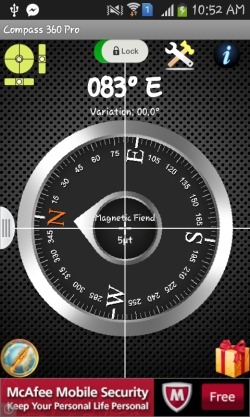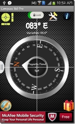 Compass 360 Pro is another free offline compass for Android, that has the ability to display current location in degrees along with bubble level. This app has the ability to lock the compass anytime. You can set the variation automatically as well as manually. You can opt to view the lines on the compass and at the same time disable the same, if required.
