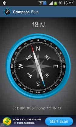 Note: The best way to use compass to get accurate results is to hold your phone parallel to the ground. Sometimes a compass might app might not display correct results and this may happen if any any metal device is situated near the Android phone. The results may also vary, if your device is heated or protected by a cover.