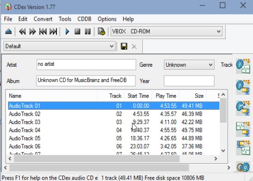 Unfortunately on the same audio CD where FreeRIP discovered ID3 tag data (artist and song info), CDex wasn’t able to do the same. It might work better with other CDs, because connectivity with CDDB and MusicBrainz website does exist.