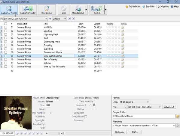 You only need to make sure that the audio CD is in your computer. Output format can be tweaked and metadata can also be tweaked manually, if it’s not correct, or EZ CD Audio Converter Free can’t find it online.