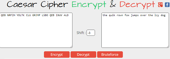 Caesar Cipher Encrypt & Decrypt is another free website to decode Caesar cipher online for free. It allows you to decode a ciphered text by Caesar method to plain text. You can specify the input cipher and the shifting key. After that, it will show you the original text. And the best part is that it supports negative shifting numbers along with the brute force method to decipher the input Caesar cipher. The website is pretty simple and you can easily use it to get the original text out of a Caesar text in one click. Just specify the ciphertext, input the shift if you know it and then hit the “Decrypt” button. Also, if you don’t know the shift, then go with the brute force method.