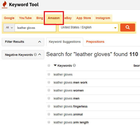 Keyword Tool is another website that can be used for getting Amazon keyword ideas. It uses the Amazon’s search suggestion feature to get you the list of keywords. It supports some countries to get the keyword suggestion. However, for free, it doesn’t show you the keyword data like CPC, search volume, etc. But don’t worry, I will also tell you a workaround to do that. There is free Chrome extension called, Keywords Everywhere that you can use to get the additional keyword data like search volume, CPC and competition. See more about Keywords Everywhere here.