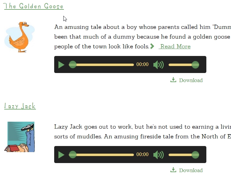 Storynory is first of the five free storytelling websites reviewed in this list. This is a good looking website with a long list of free stories to go through. The website provides you audio stories that you can listen online for free. Volume can be adjusted according to your choice. You can even download these audio stories on your system, for free. The website has made available more than a 100 audio stories for its users. In such a scenario, it becomes difficult to judge where you will find a particular story. To avoid this confusion, all the stories have been divided into various categories. These categories are: Original stories, fairy tales, educational stories, myths and world stories, junior stories, and more. Try them out from the link given above.