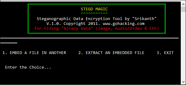 As I said above, StegoMagic is a Command line software. You have to use it with the help of certain numeric keys of the keyboard.