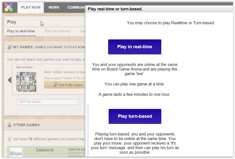 Before playing your favorite board games here, you have to register for a free account on the website. Your own account looks like a social networking platform; you can share your thoughts or any news on the news page, read about most prestigious players, see who is online, and more. The games tab allows you to enter in a game with your opponent in real-time or turn-based mode. Check out the link above to know more.