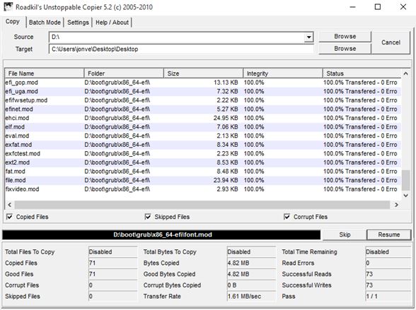 Setup is pretty straightforward. Setup the source drive, and the output directory up top. Click on the “Start” button will initiate the recovery. Results of the recovery are given in real time in results page down below. Notice the “Status” column. There you’ll be able to find a percentage point of recovery for each file individually. Like with other optical data recovery software for Windows 10 that I covered, files that cannot be recovered are going to be skipped. Recovery results can be filtered to only show copied files, skipped files and files which are completely corrupt. More detailed stats can be found down below. Out of the more advanced features that are worth mentioned would be the ability to setup batch recovery using scripts.