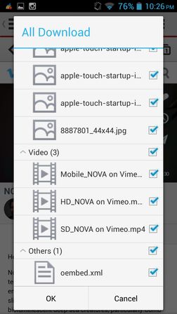 This will scrape all the available video files from the pasted URL and give you a list of all the available files from that URL which can be downloaded (see image above). Select the one you want to download and tap on Download to save the video.