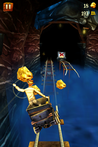 The game has touch and sensor based controls for playing. You can swipe left and right to change the tracks. If you want to avoid the obstacles, then swipe upwards to jump and backwards to bend down depending upon the type of obstacle. Tilt your iPhone left and right to collect the gold nuggets and other things which come in your way.