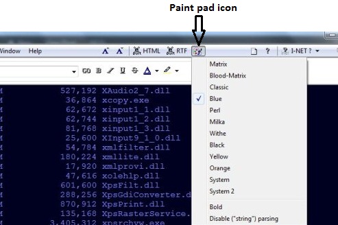 - You have the option to change the whole command prompt background and it’s look. Just click on the paint pad icon as shown in below screenshot to select from various options like: Matrix, Blood Matrix, Classic, Blue, Perl, Milk, White, Black, Yellow, Orange, System, and System 2.