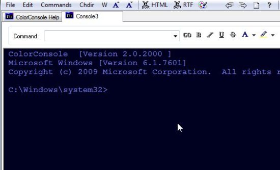 - Color Console also let’s you export your Command prompt session as HTML (Hyper Text Markup Language) or RTF (Rich Text Format). The HTML will open in your browser and RTF will open in a new Microsoft Office Word file.