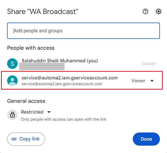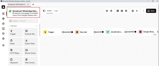 Click here to navigate to the Broadcast WhatsApp Message workflow from Automa.