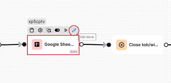 5. Next, hover your mouse cursor over the Google Sheet block in the workflow and click on the pen icon to edit it.