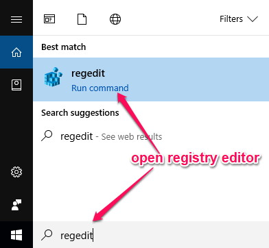 Step 1: To get started, simply type “regedit” in the search bar at the bottom of your PC screen. Then click on the “regedit” program to open up the Registry Editor.