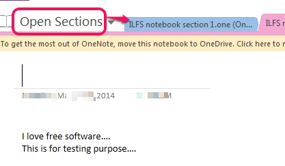 Step 4: Now you can select a particular section, or all sections, and can open those sections with OneNote application. This will also save those sections automatically in Open Sections.