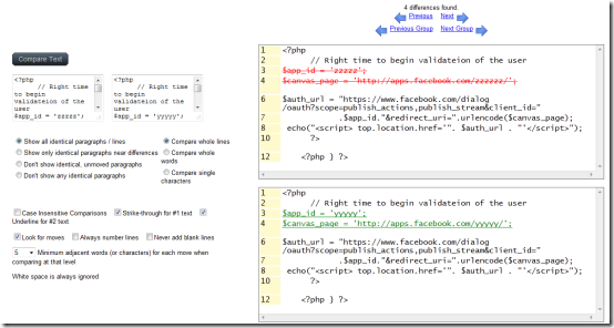 Diff Text is an online application that allows you to compare text online. This free online tool is capable of highlighting the changes as well as the matching content in different colors. Using it, you can compare text online on the basis of lines, words, and letters. This way Diff Text becomes a simple, yet effective content reviewing application.