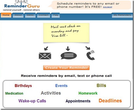 ReminderGuru is a free online reminder tool. This free online reminder tool can help people especially those who can’t seem to properly sort out their schedules. How about a free online reminder tool that is not only capable of reaching you through email and text but is also capable of calling you? Yes ReminderGuru can do that. However, this SMS and call reminders work only with US and Canadian numbers. It also comes with an interface that is very easy to use. So do what you have to do, and leave the reminding to ReminderGuru.