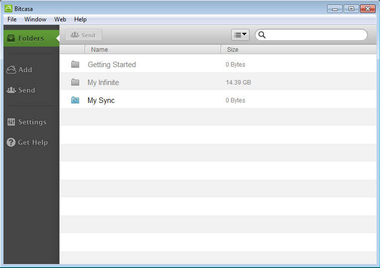 What you see on the screen above is what waits for your after you’ve successfully registered and logged in with your Bitcasa credentials in the main application, which is available for free download. Since this is online storage service it can also be accessed on the main website, by logging in: