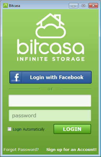 Bitcasa login window