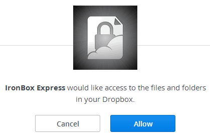 Step 1: Sign in with your Dropbox account. After sign in, you need to allow IronBox Express to access your Dropbox files and folders.