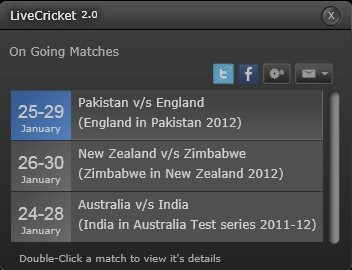 LiveCricket is a free cricket scores desktop ticker for live cricket scores right there on your desktop. This free desktop ticker for cricket scores is a simple, straight forward and completely advertisement free desktop ticker to get live cricket scores on your desktop.