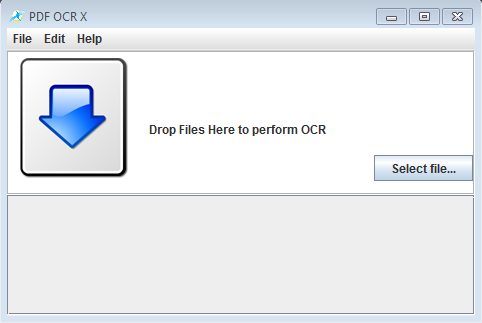 Interface of PDF OCR X doesn’t look like much at first, as you can see from the screenshot down below. You only get a Select file button in the bottom right, drag and drop zone in the middle and a standard menu in the top left corner.