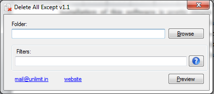 Delete All Except is a very efficient, free file cleaner that helps in deleting a set of files in a folder whereby giving you the option to select the files which you would like not to be deleted. People who use several file formats on their computer and save them in a single folder would find this free bulk file cleaner very useful when they wish to delete numerous files besides files of a specific name or a format. Using this free file management software is pretty simple wherein you need to be aware of the file formats and basic exploring knowledge.