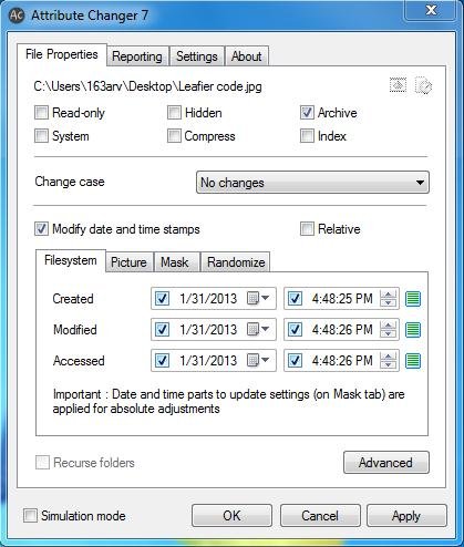 From there, you can easily modify properties of the file or folder and quickly save desirable changes. Attribute Changer also works in “Simulation” mode, to test changes you made to your files without actually making modifications to them.
