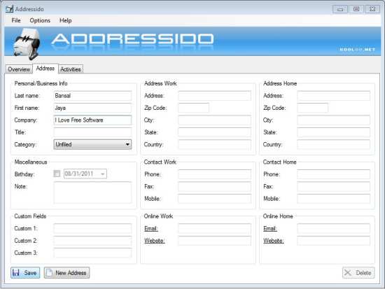 Custom Addressbook is another software in our list that is free of cost and simple to use. You can use this small yet powerful Address book for all operating system including Windows Vista, XP, and 7.