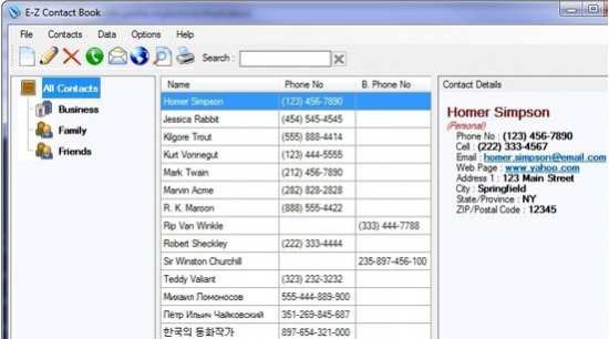 E-Z Contact Book is a free and simple yet easy-to-use and efficient windows application for managing contact information. The application is easy to handle and you can easily add contacts with this software. Add, edit and save your contacts details with this free ware in your computer and you will less prone to losing them.