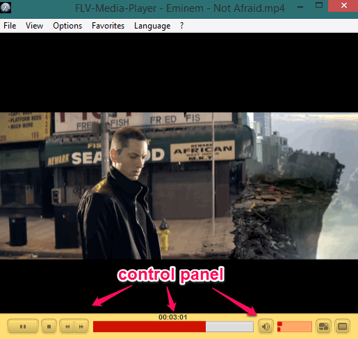 Open the interface of this free flv player and add any supported audio or video file in this player. You can drop media file to play quickly. Or else, File menu can also be used to add required file. Once the file has started playing, you can use the control panel to set volume, view video in full screen mode, or to jump to a particular position using progress bar.