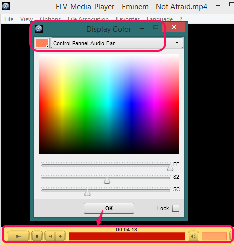 - You can also set display color for background, icons, progress bar, audio bar of the control panel, etc.