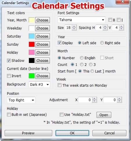 The calendar option is also great. You can simply enable and disable the calendar from the wallpaper. I really like the settings that you get for the calendar. You can change the size, colors, and position of the calendar. You can also add your own holidays in the calendar. You can do this from calendar settings – > Edit Holiday .txt file.